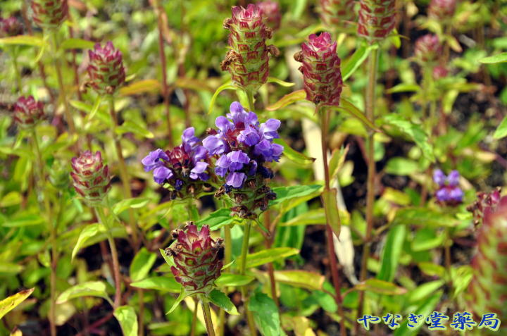 | 夏枯草はウツボグサ属ーシソ科に属する植物で、北海道から沖縄の日本各地と中国大陸などの ユーラシア大陸の温帯地方で、日当たりのよい山野や草原に自生する多年草の植物です。 北海道や本州北部には「深山靱草(ミヤマウツボクサ)」、本州の高山には 「立山靱草(タテヤマウツボグサ)」と言う植物がありますが、 これらは薬用には用いません。 夏枯草は古代中国の書物の「神農本草経」の下薬(下品)に記載されており、 内容として「一名夕句。一名乃東。味苦寒、生川谷、治寒熱瘰癧、鼠瘻頭瘡. 破ビ(※1)、散エイ結氣、脚腫湿痺、輕身。」と書かれています。 (※1ビ=ヤマイダレ+微)(※2エイ=ヤマイダレ+嬰) ウツボグサの名前の由来は花の形が武士が矢を入れる矢筒(靱(ウツボ)) に似ているのでこう言われます。 夏枯草の名前の由来は夏に花が開花しますが、開花と同時に花が茶色になり、 少しずつ枯れるので夏枯草になりました。 余談・・・夏枯草の古名は乃東(なつかれくさ)と言います。 余談・・・良い香りがする植物や香水や香料になる植物は「シソ科」の植物が多いです。 有名なシソ科の植物は「紫蘇」、「薄荷」、「ラベンダー」、「ローズマリー」、 「タイム」、「バジル」、「セージ」、「オレガノ」、「マジョラム」、 「レモンバーム」などがシソ科に属する植物です。 一般的にシソ科の植物はハーブに分類されます。 ハーブ以外にシソ科の植物でよく利用される植物は「キランソウ」、「カキドオシ」、 「ヒキオコシ」、「メハジキ」、「シロネ」、「エゴマ」、「カワミドリ」、 「タンジン」、「ケイガイ」、「コガネバナ」などもよく利用されるシソ科の植物です。 |