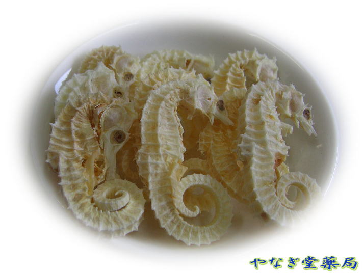 | 海馬の飲用方法ですが 1日2グラムから5グラム(海馬1匹から2匹)ぐらいの海馬を水600ccから800ccの中に 入れて弱火で15分から20分ほど煎じます。 煎じた液体を1日数回に分けて飲用します。 (海馬は雄雌1対を合わせて服用するのが良いと言われています。) |