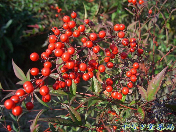 南天果実にはアルカロイドのドメスチン、Oーメチルドメスチン(ナンテニン)、イソコリジン、ヒゲナミンなどが含まれております。