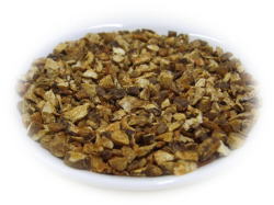 | 蒼朮は日本薬局方によると主として漢方処方用薬である。健胃消化薬、止瀉整腸薬、 利尿薬、鎮暈薬、保健強壮薬、鎮痛薬とみなされる処方及びその他の処方に 比較的高頻度で配合されている。 他に蒼朮を煎じて服用すると健胃、利尿、発汗、除湿、瀉剤などの作用があり 症状として胃腸病、消化不良、神経痛、関節痛、関節リュウマチ、眩暈、動悸、 息切れなどに効果があります。 参考・・・蒼朮によく似た生薬で「白朮」があり、白朮は健胃・整腸、利尿、 鎮痛、補気剤、補脾剤などの作用があり、蒼朮とは効能、効果が異なります。 蒼朮と白朮の違いですが蒼朮も白朮も共に体内水分を調節して腹水、食欲不振、 嘔吐、悪心などの症状を改善します。 しかし蒼朮と白朮には重要な相違点があります。 蒼朮の場合・・・蒼朮は実証で胃腸機能は丈夫又は普通で発汗作用は蒼朮のほうが 優れているが、健胃作用、利尿作用は白朮のほうが優れている。 蒼朮は水毒が原因の神経痛、リュウマチ、痺れ、浮腫などに用いられます。 白朮の場合・・・白朮は虚証で胃腸機能は低下又は弱く、発汗作用は蒼朮が 優れているが健胃作用、利尿作用は白朮のほうが優れている。 白朮は水毒が原因の多汗、胃内停水、胃腸虚弱、嘔吐、眩暈、浮腫、小便不利、 胃内停水が原因の胃腸の冷え、胃弱、下痢、腹痛などに用いられます。 蒼朮を煎じる場合は 蒼朮約3グラムから5グラムを水600ccから800ccの中に入れて弱火で 15分から20分程煎じて、煎じ終われば薬草は取り除き、1日数回に分けて服用します。 蒼朮と他の薬草(ヨクイニン、艾葉、ゲンノショウコなど)と一緒に煎じて 服用しても良いです。 蒼朮の粉末の場合は 蒼朮の粉末を1回量約1グラム~2グラムを目安に水またはぬるま湯で1日数回 服用するか、お湯に混ぜて服用してください。 (小さじ半分ぐらいが約1グラムです。) 蒼朮の粉末を単独で服用しても良いが、牛乳、野菜ジュース、スープなどに 混ぜて服用しても良いですし、小麦粉と混ぜて料理に使用されても結構です。 「粉末が咽喉に引っかかる」、「味が苦手」などの支障がある場合はオブラードに 包んで服用しても結構です。 |